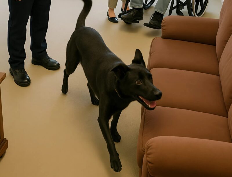 The dog froze at the sofa, the fur on its neck bristled, and suddenly it growled. A second later, it lunged at the soft cushions with a loud bark, burying its snout in the fabric. The owners gasped, and the officer frowned: