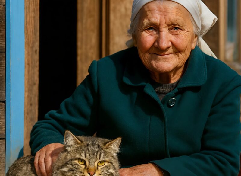 With a little squeak, the kitten seemed to be requesting assistance. The grandmother knelt, took it up tenderly in her hands, and placed it beneath her cozy shawl. “Little one, hold on. We’ll get you warmed up,” she muttered.