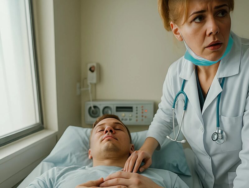 The “dead” man’s fingers twitched at the same moment. The nurse’s eyes became wide with terror as she leaped back. The man opened his eyes, inhaled a sharp breath, and muttered, blinking: