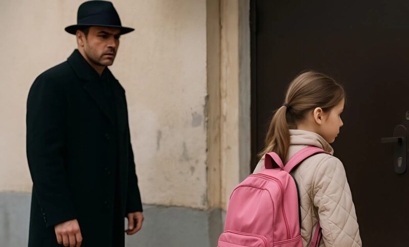 After school, the seven-year-old girl was making her way home on foot. She clutched her school bag in her hands, notebooks protruding irregularly, and a scarf that kept falling down dangled from her shoulder. The yard was deserted and silent. Someone was standing only close to the entryway.