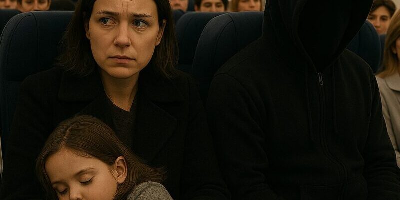 On the evening flight from Denver to New York, row 22. She hadn’t removed her wool coat since the burial, and she was still wearing it. With his head resting on her arm, her five-year-old daughter was fast asleep. A man sat next to her, his hood drawn low and he said nothing.