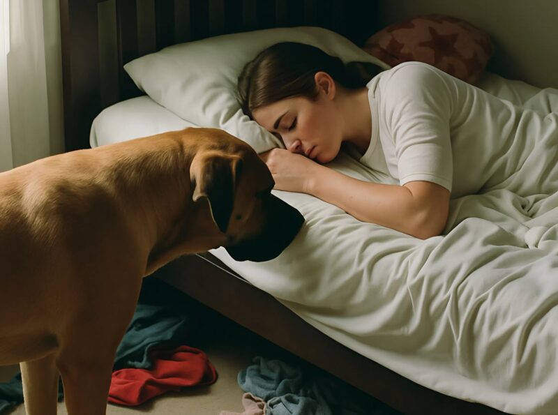 Abruptly, I sensed a weight bearing down on my chest. I was half asleep when I opened my eyes to see my dog standing just in front of me. With his paws resting on me, he gazed at my face.