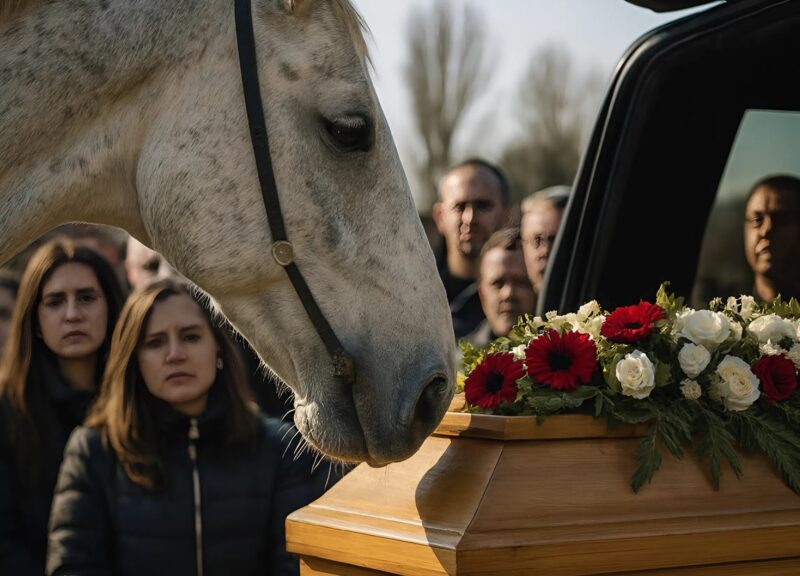 It neighed loudly, as though pleading to be allowed to pass, and stopped suddenly. Instinctively, the people moved aside. The horse approached the casket with assurance, bowed its head, and then did something that startled everyone