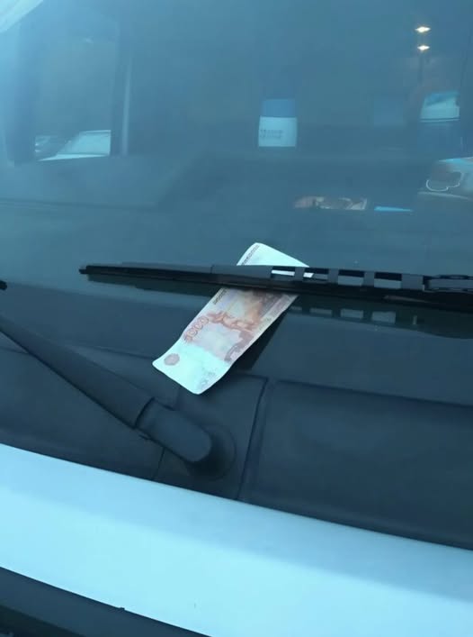 When I returned to my vehicle a little while later, something unusual immediately caught my eye—right under the windshield wiper was a folded banknote, half-hidden beneath the rubber blade, fluttering gently in the soft breeze.