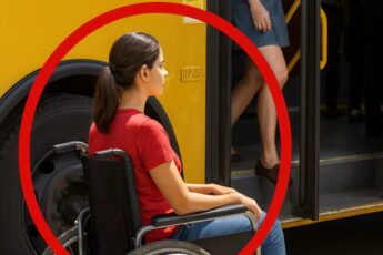 No one in the neighborhood stopped to assist the woman in a wheelchair who was standing next to the bus.