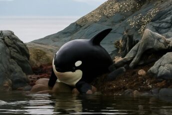 An incredible thing happened when rescuers arrived after a young orca became caught on the rocks and