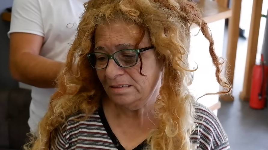 At the salon, the transformation began. A stylist meticulously worked on her long, matted hair, a physical representation of the years of hardship she had endured. After a careful cut, the stylist washed and conditioned her hair, then colored it a beautiful light silver and styled it into a chic bob. While her hair was being treated, she received a manicure and had makeup applied, both of which highlighted her features and completed her physical change. She was also given a new set of clothes and shoes, marking a final step in her transformation.