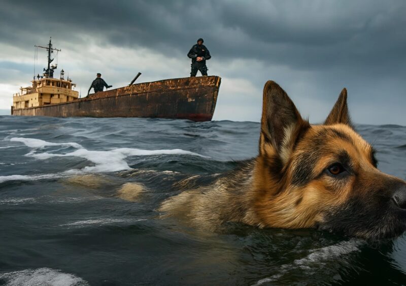 They all ran to the railing. Indeed, there was a German shepherd swimming by himself in the midst of the vast ocean in front of them. How could a dog get here? the sailors exchanged shocked glances.