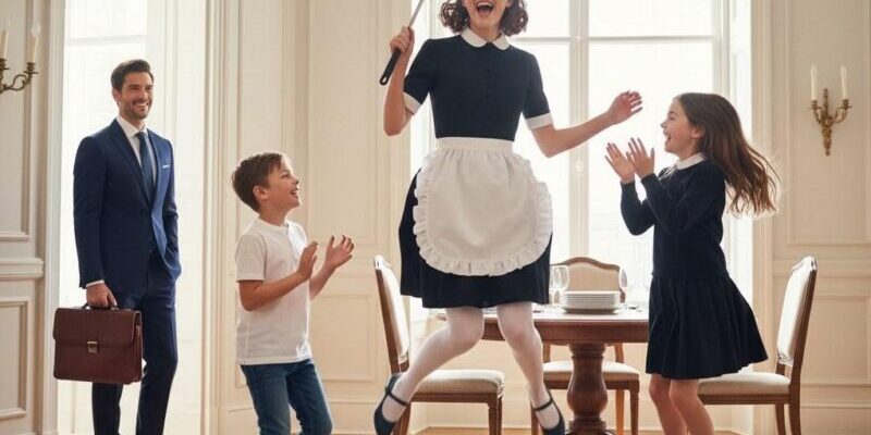 Unable to move or speak, Adrian stood motionless in the doorway. The image in front of him appeared to be from a different world: Rosa, the normally quiet housekeeper, was leaping into the air while holding a ladle like she was using a mystical scepter. Ethan and Lily were giggling madly around her, whirling around her like two tiny tornadoes of happiness. Even several spoons that had been tossed in the fervor remained in the air before descending gently to the ground.