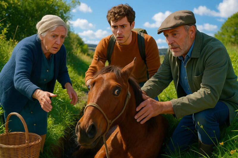I initially assumed it was just an old tire or a fallen tree. But my heart skipped a beat as we drew nearer. It was a horse in the deep ditch. Covered in burrs and muck, it was malnourished and barely breathing. Its eyes were terrified, but not angry; rather, they were a mute supplication.